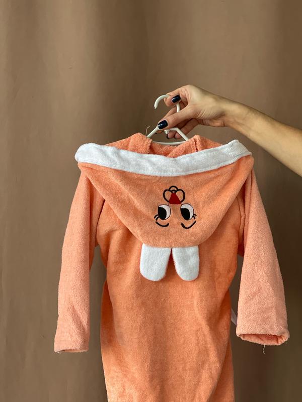 Котоновий дитячий банний халатик. Дуже добре впитує воду. Колір персиковий. На вік 3-4-5рочки. 100% котон
