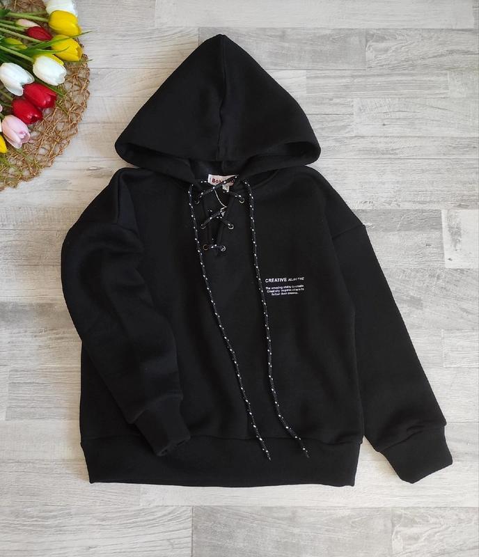 🧡В наличии 🧡 Модное худи для девочки Ткань трехнитка с начесом Украшено шнурочком, вверх стягивается КАЧЕСТВО ЧУДОВА! цвет черный Цена 460 грн замеры: длина /рукав от горловины / п********** 134р-48/52/43 140р-49/53/44 146р-51/54/45 152р-52/59/48 158р-55/61/51 +-2см 128-1шт 134-1шт 140-1шт 146-1шт 152-1шт