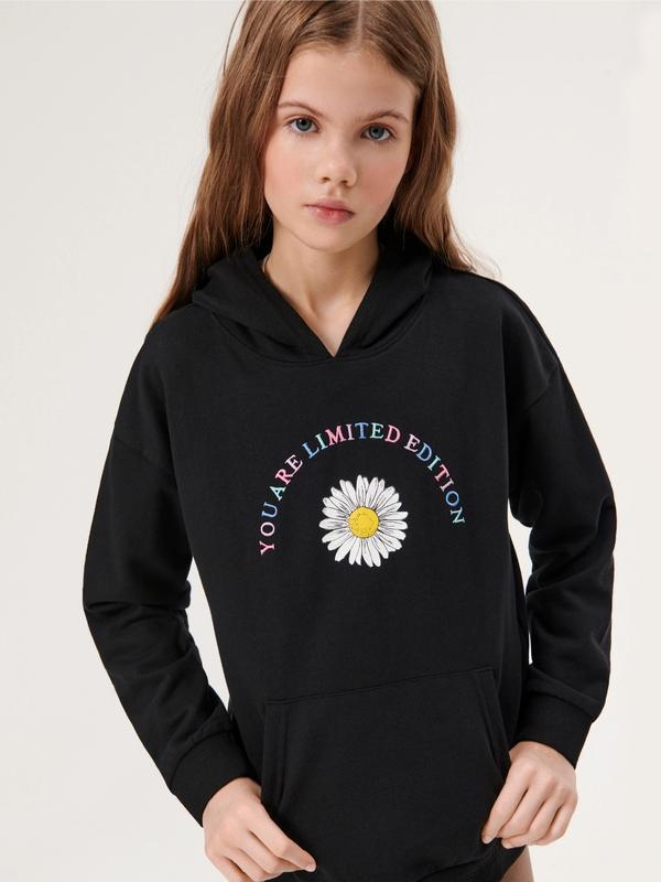 -зручний каптур -опущена лінія плечей -кишеня-кенгуру -декоративний принт і вишивка -підкладка з м’яким ворсом із внутрішнього боку -60%бавовна 40%поліестер