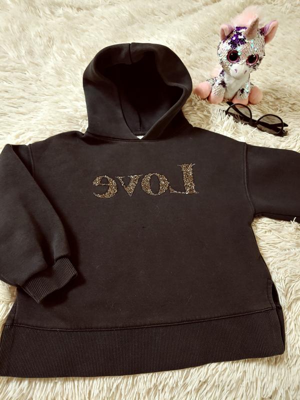 Худи Zara, на 7 лет, но подойдет и раньше, мы носили в 6 р. Красивая, качественная, с надписью из камушков, немножко оттопли, но как будто так и надо)) Длина 45 см Ширина 41 см Рукав от шеи 47 см