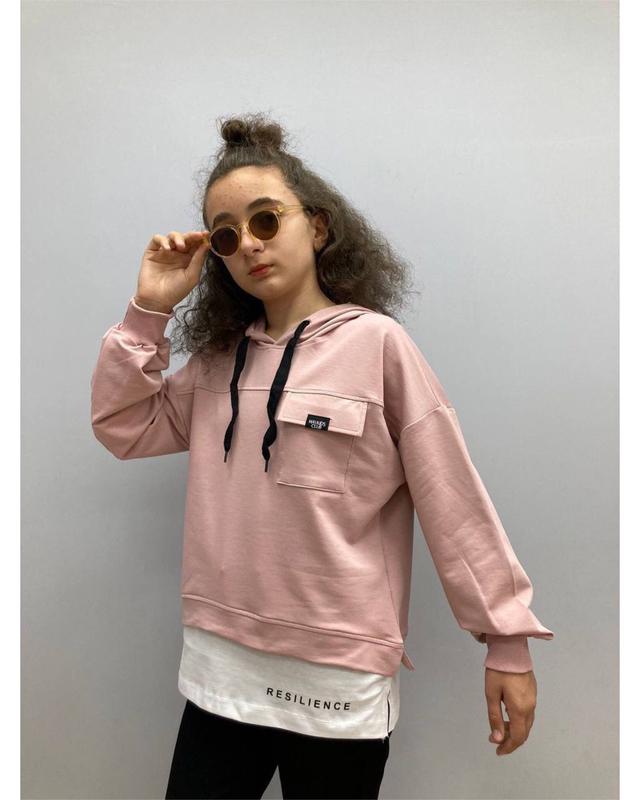 Очень стильная и удобная худи для девочки. Худи с капюшоном в пудровом цвете. Такую худи легко сочетать с другими вещами в гардеробе.