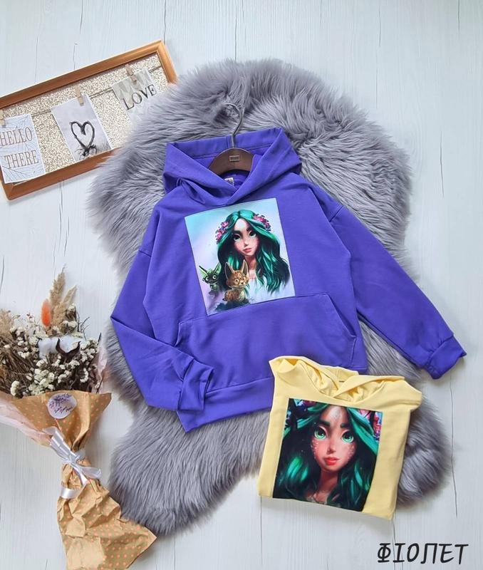 В НАЯВНОСТІ!!! Трендовое худи с любимой мавкой тканина двохнитка имеет карман кенгуру РЕКОМЕНДУЮ!!! 128(1 шт)-длина 47,пог 45рукав от горловины 56 134(1 шт)-длина 49,пог 46,рукав от горловины 58 140(1 шт)-длина 53,пог 47,рукав от горловины 60 146(1 шт)-длина 55,пог 48,рукав от горловины 62 152(1 шт)-длина 56,пог 49,рукав от горловины 63 158(1 шт)-длина 58, пог 50,рукав от горловины 65 +-2 см