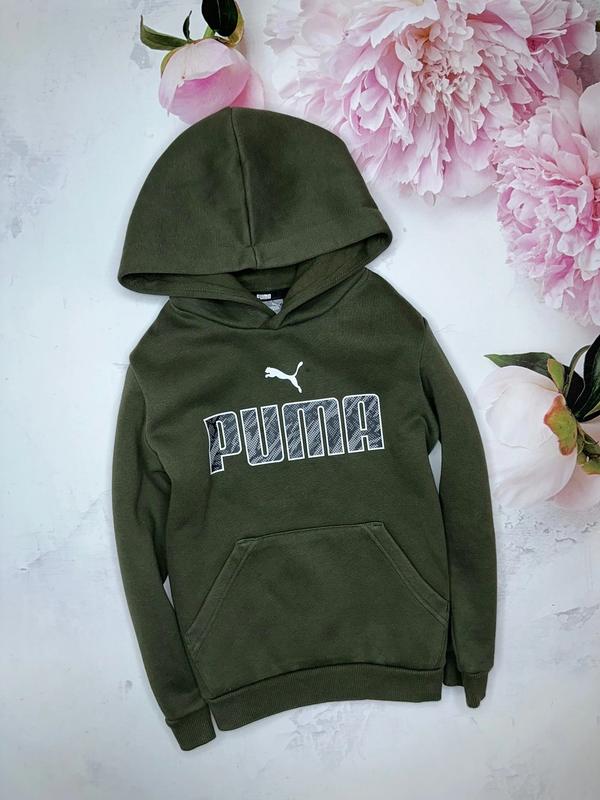 Худи цвета хаки Карман муфта Внутри на баечке Состояние идеальное 🏷️Puma 7-8 лет/128 Длина 47. ПОГ 39. Рукав 43-50