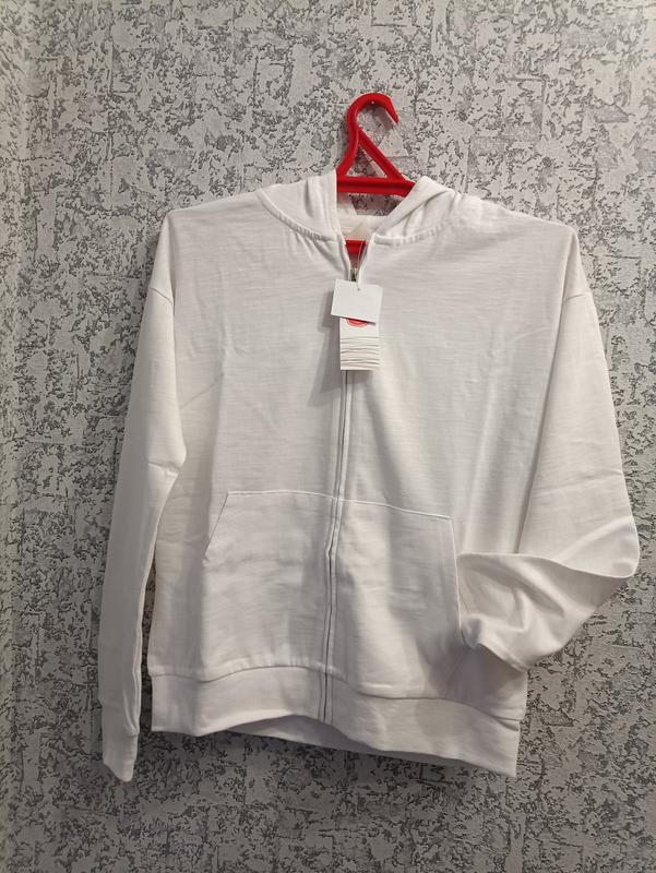 Белая, тонкая, коттоновая кофта на молнии с капюшоном. Cool club, размер 170(подойдет, как на подростка 15-16 лет, так и на S взрослому😉).