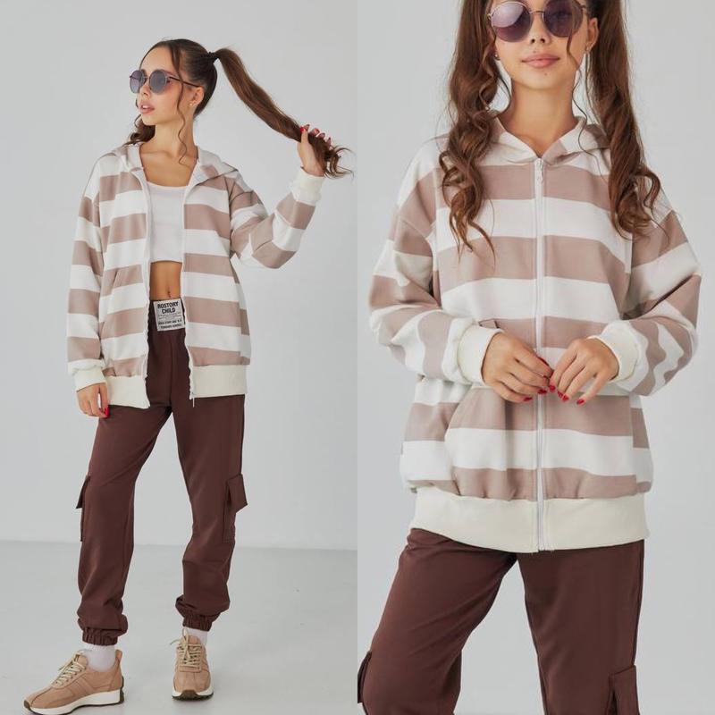 Худи "БОМБИНО" Хит этого сезона с капюшоном и карманом кенгуру застежка на молнию ткань турецкая двухнить-петля в широкую полоску низ и манжет рукава - зербаная ПОЛНОМЕРНЫЕ Рекомендую! рост/длин./пог/рукав от горловины похибка+-2см 140-146/56/55/57-3шт 146-152/58/56/59-2шт 152-158/61/57/61-3шт 158-164/64/58/64-3шт 164-170/67/59/67-3 шт