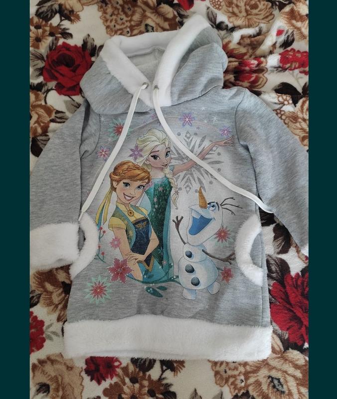 Худи теплая на девочку с красивым рисунком с карманами.Може быть как туника В хорошем состоянии.