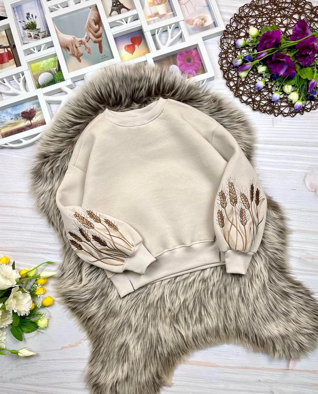 Саш в наличии 💙💛 Теплые Свитшоты с вышивкой для красавиц "Колоски"🌾 Ткань турецкая трехнить пенье, на флисе, на рукавах вышивка посадка оверсайз Качество шикарное 🔥 Замеры: длина/пог/рукав от горловины 128 - 50/47/60 - 2 140 - 52/51/61 - 2 164 - 58/54/68 - 2