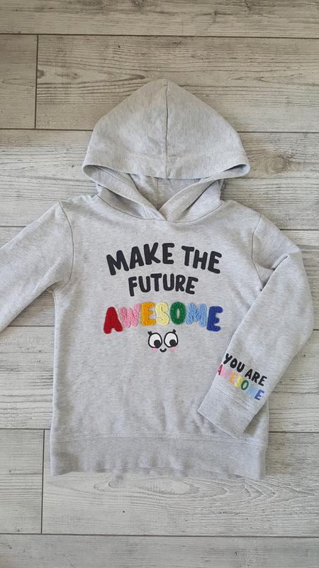 Просьба через кнопку КУПИТЬ оформлять после договоренности❤ Стильная кофта с капюшоном H&M. Приятная расцветка, спереди яркий принт, длинный рукав, ровный свободный крой, двойной капюшон. Внутри чуть утеплена флисом. Указан размер 4-6 лет