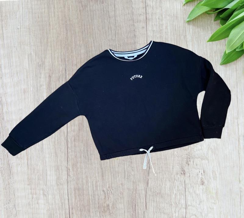 Стильная и очень крутая худи на девочку. Укороченная на завязках и тепла. Длина 45 см, рукав 48 см