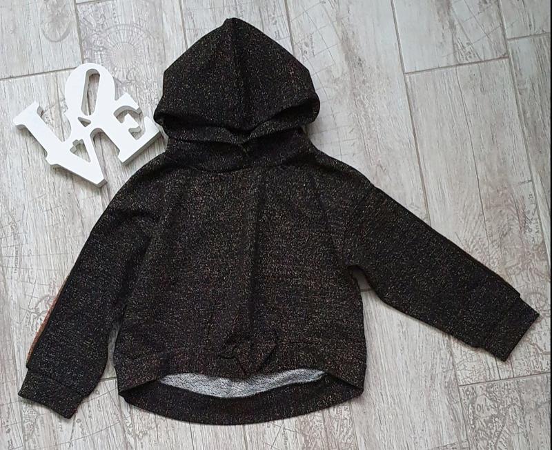 Худі Чoрного кольору з люрексом темне золото На зріст - 110 см Довжина - 33/39 см Пог - 37 см Довжина рукава - 29 см 💢Ціна - 390 гр