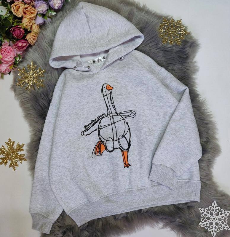 Худи с капюшоном и трендовым качественным прорезиненным накатом ГУСЬ-ОБІЙМУСЬ В капюшоне есть утяжка Ткань-трехнитка пенье на флисе Супер качество!!! Рост/длина/пог/рукав от горловины похибка+-2см 164-170/64/60/68