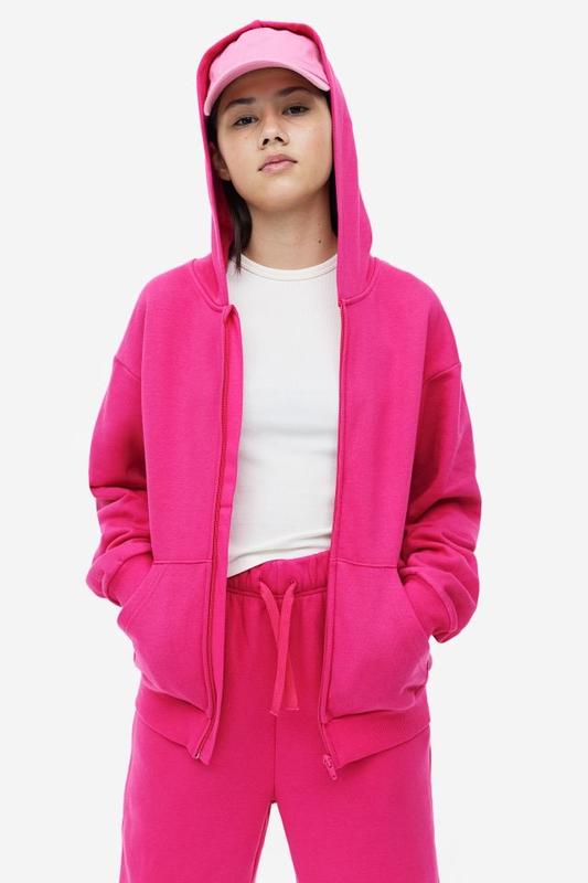 худі від H&M із легкої тканини зі суміші бавовни капюшон на підкладці, блискавка спереду із захистом підборіддя, занижені плечі та кишені-кенгуру, а також манжети та низ у рубчик. Бавовна 80%, поліестер 20% є в двох кольорах розміри 158/164, 170 наявність уточнюйте