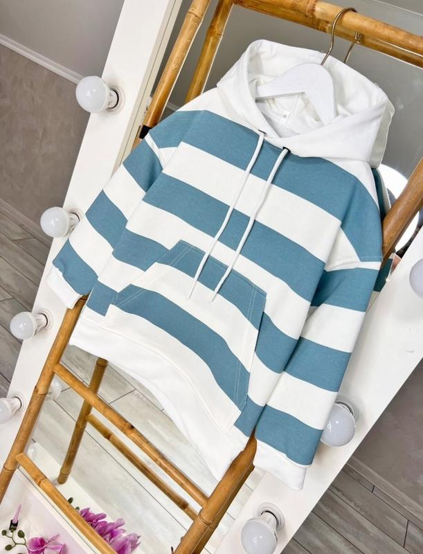 Стильное худи с карманом кенгуру и двойной объемный капюшон на шнуровке трендовая полоска ты отличное качество Турецкая трехнить петля!!! Замеры: длина/рукав от горловины/пог 146-58/58/49 Аб