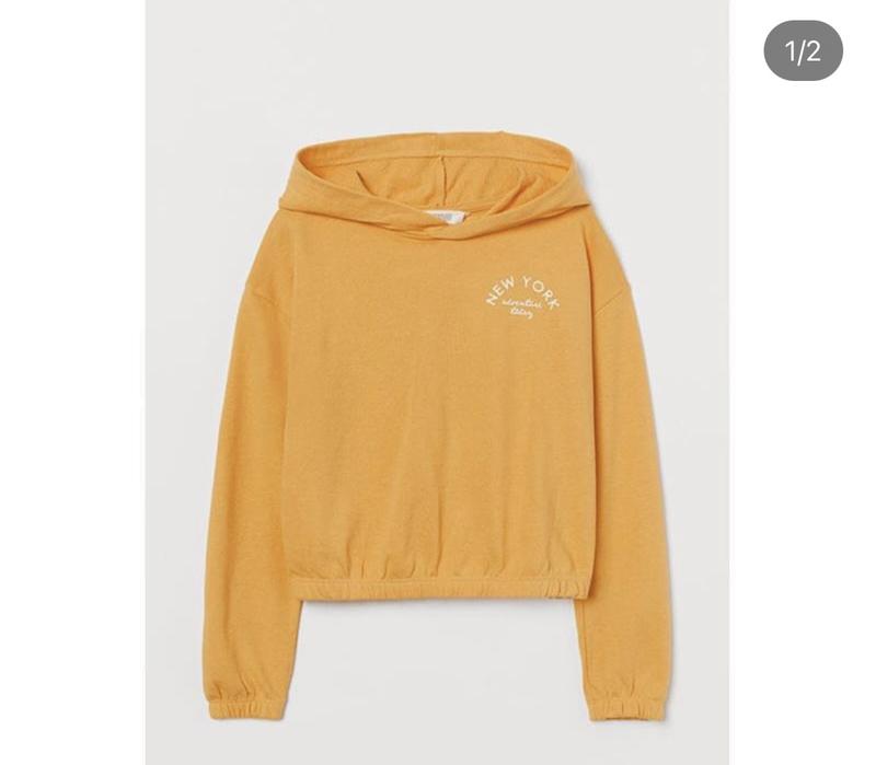 Укороченное худи с капюшоном на девочку подростка H&M💛 Из плотного хлопка без утепления (петелька) с сильно заниженной линией плеча и длинными рукавами. Рельефная трикотажная резинка по горловине, низу рукавов и нижнему краю. Свободный крой. 10-12 лет - р.146/152: рукав от плеча 50, длина от горла 67, длина 47, ПОГ 52