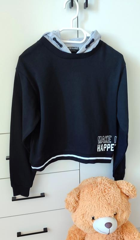 стильное укороченное худи находится в 2х размерах 128 р. и,164 р(подойдет на размер S).Моженная одевать в качестве фемели лука.