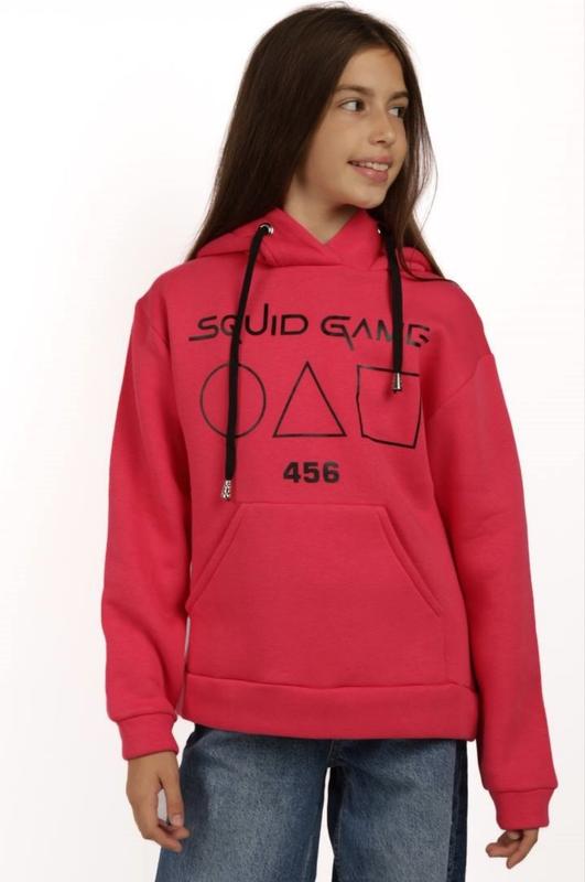 Материал трехнитка,на флисе,теплёнок.Состав коттон,вискоза.Колир малиновый.Позади капюшон, передний карман,- кенгуру.В наличии на рост 146. Замеры 146 Длина 60 см Полуобхват 47 Рукав от плеча 54