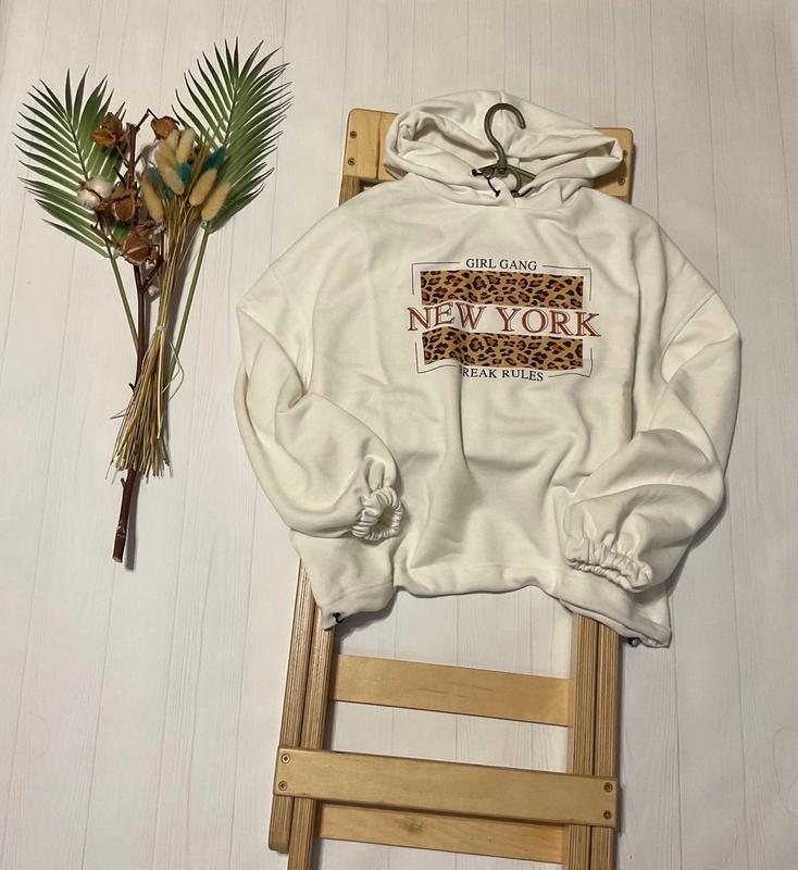 Стильовое худи с капюшоном. Капюшон и низ худи на затяжке, спереди накат. Манжеты на резинке. Ткань: турецкая двунить петля. Замеры: 164 длина - 56см, полуобхват груди - 60см, рукав от горловины - 69см. Размеры в наличии: 164-1шт