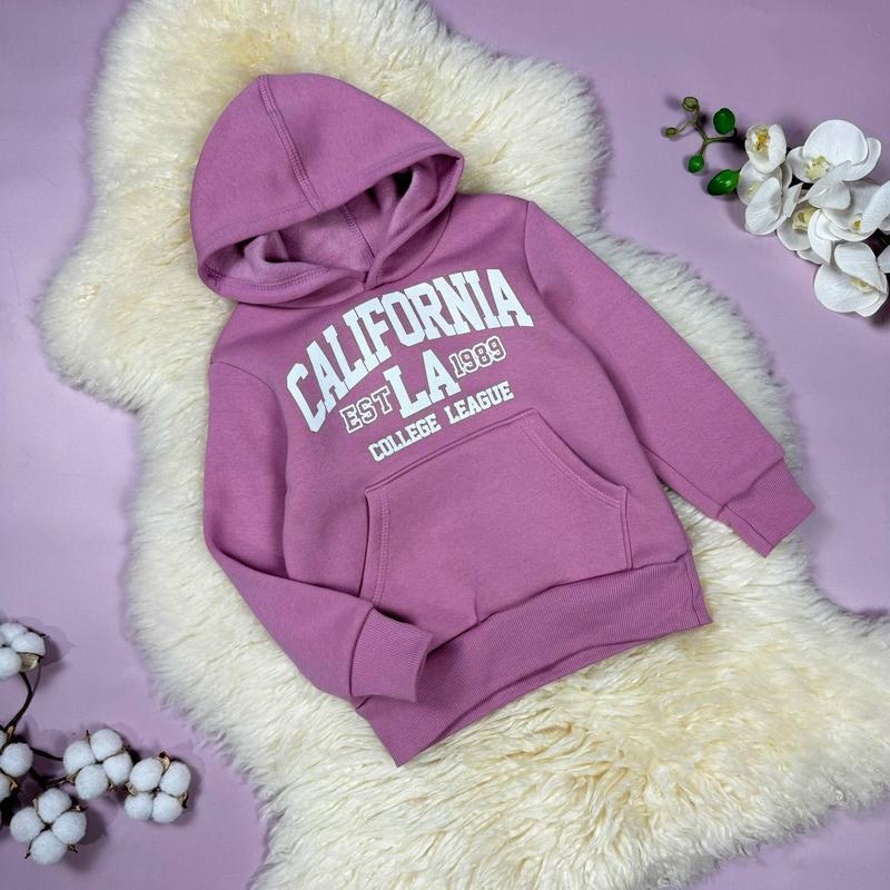 💕Худи California, трехнить на флисе.. С капюшоном и карманом по переду. Рисунок - накат. Ткань турецкая трехнитка на флисе. Не кошлатиться. Производитель Украина. 📐Замеры: (98-104)- длин 41/ полуобхив. 34/рук. 36 (104-110) - длин 43/ полуобхив. 35/рук. 37 (110-116) - длж 46/ полуобхив. 36/рук. 38 (122-128) - длиж 48/ полуобхв. 38/рук. 41 💰Цена 470 грн