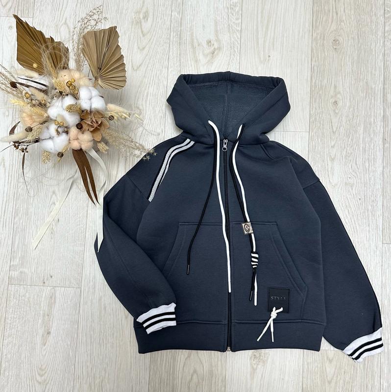 Крутевая худи-зипка Ткань трехриткая пенье с начесом На молнии, очень теплая и красивая Рукава на манжетах КАЧЕСТВО ЧУДОВА!! РЕКОМЕНДУЮ!!! ТЕМНО-СЕРЫЙ КОЛИР 128-134-1шт 140-146-1шт Длина/пог/рукав от горловины 128-134-50/44/56 140-146-54/45/58