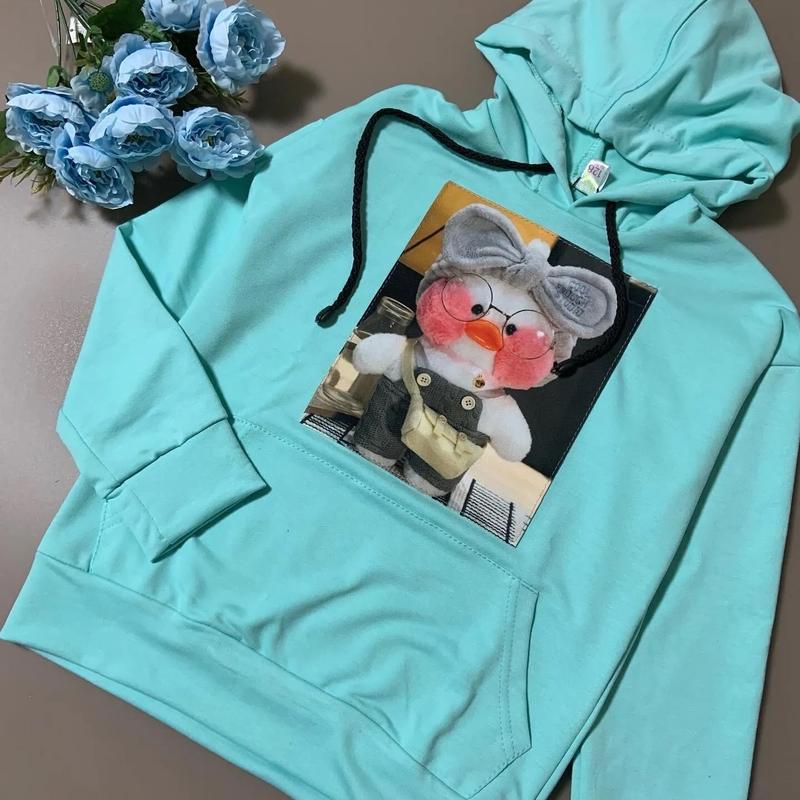 Худи из аппликационной утенок для девочек Пришивная аппликация Ткань: турецкая трехнить-петля (без флиса) 128-длина-54см,бюст-42*2см,рукав-59см +-1-2 см