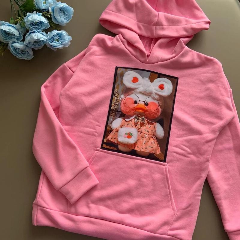 Худи из аппликационной утенок для девочек Пришивная аппликация Ткань: турецкая трехнить-петля (без флиса) 128-длина-54см,бюст-42*2см,рукав-59см 134- длина-56см, бюст-43*2см,рукав-61см +-1-2 см