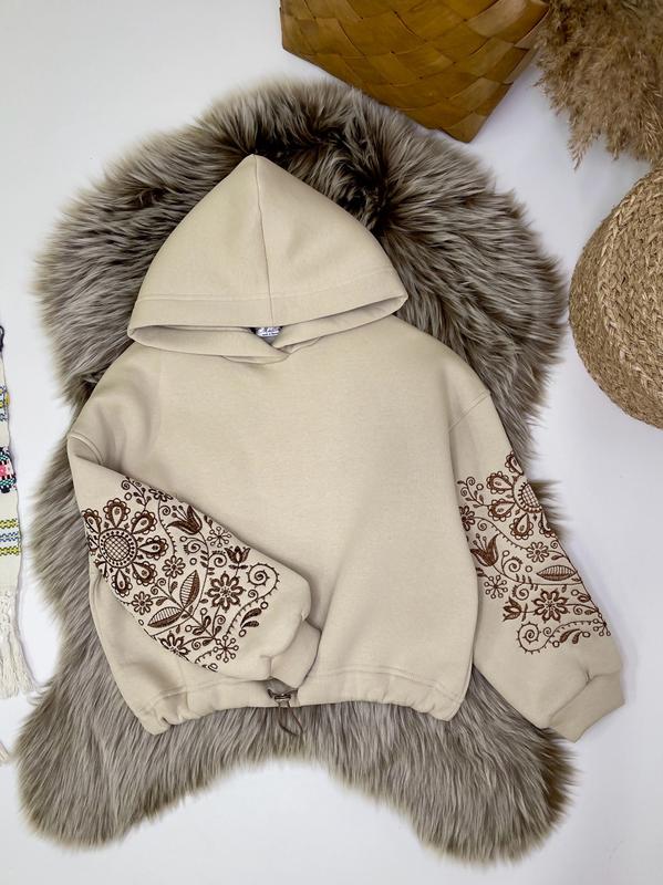 Таня Арт 5761 Худі із чарівною етно-вишивкою на рукавах з капюшоном та утяжкою понизу Тканина-турецька трьохнитка на флісі дуже приємна на дотик СУПЕР ЯКІСТЬ! зріст/довжина/пог/рукав від горловини похибка+-2см 140-146/46/53/57-1шт 152-158/52/57/64-1шт