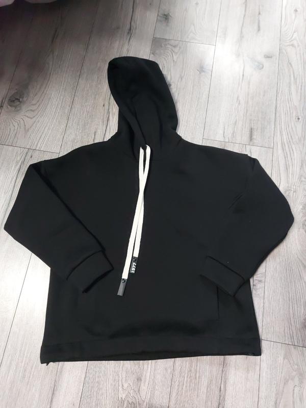 Худи детское на флисе в черном цвете. На рукавах манжеты, внизу резинка для регулировки ширины.