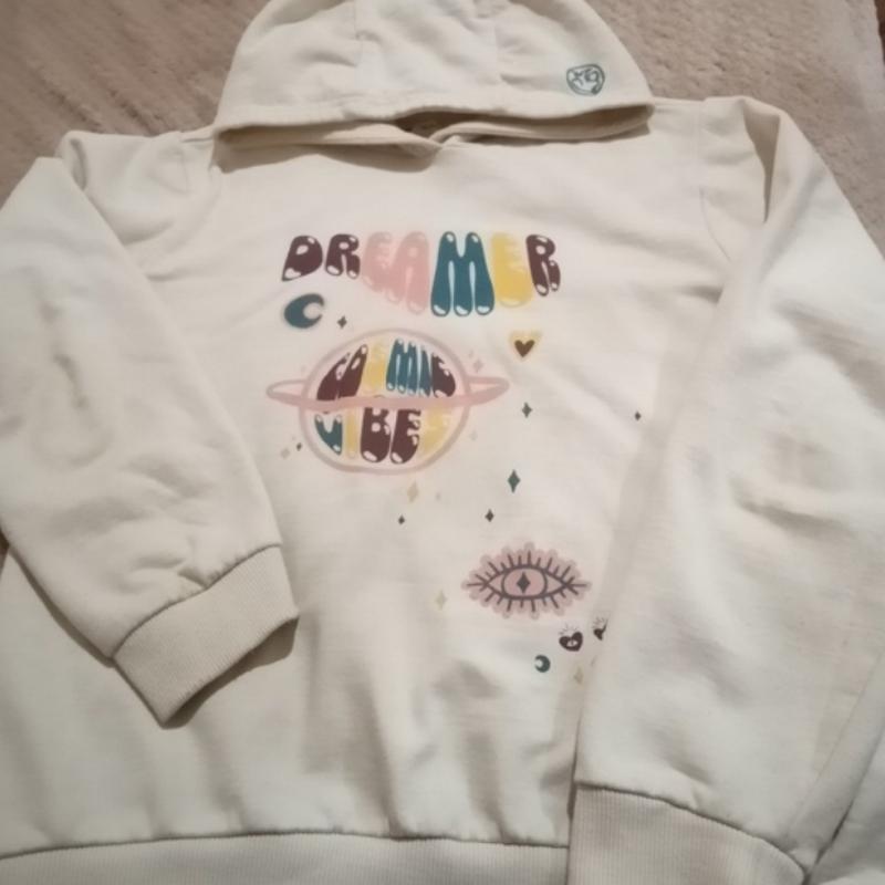 Худи приятного цвета, без карманов. Длина изделия 54 см, ширина плеч 40 см, длина рукава 54 см, полуобхват груди 47 см.