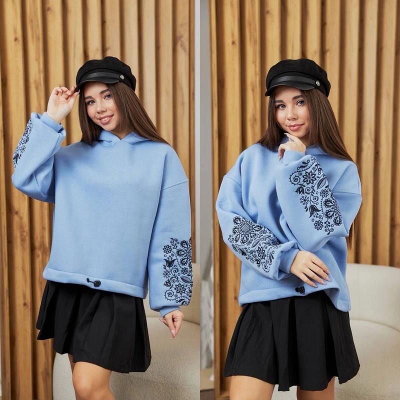 Таня Арт 5873 Худи с очаровательной этно-вышивкой на рукавах с капюшоном и утяжкой по низу Ткань-турецкая трехнить на флисе очень приятная на ощупь СУПЕР КАЧЕСТВО! рост/длина/пог/рукав от горловины похибка+-2см 140-146/46/53/57-1шт 146-152/49/55/60-1шт 152-158/52/57/64-1шт 158-164/55/58/67-1шт