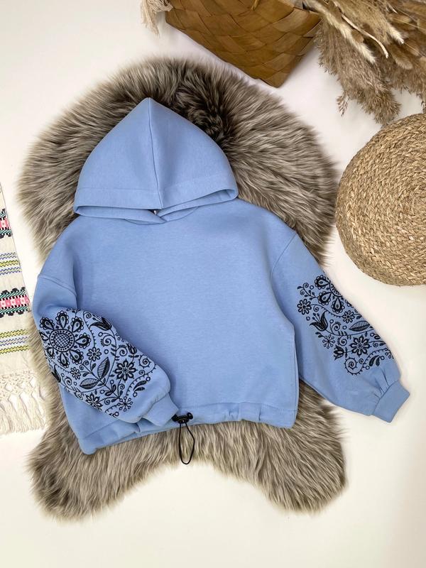 Худи с очаровательной этно-вышивкой на рукавах с капюшоном и утяжкой по низу Ткань-турецкая трехнить на флисе очень приятная на ощупь СУПЕР КАЧЕСТВО! рост/длина/пог/рукав от горловины похибка+-2см 140-146/46/53/57-1шт 146-152/49/55/60-1шт 152-158/52/57/64-1шт 158-164/55/58/67-1шт 164-170/59/60/71