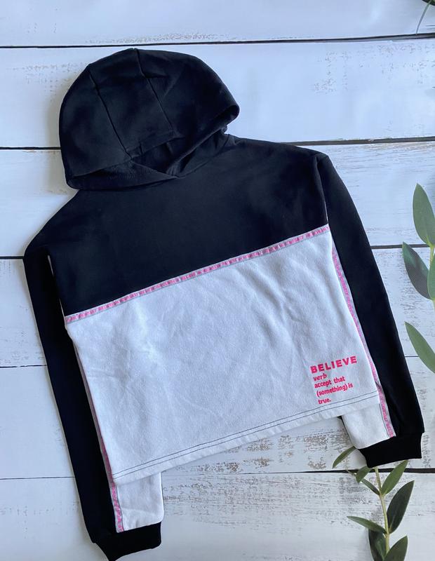 Стильное худи укороченной модели на легком утеплении. Идет немного оверсайз, линия плеча приспущена! Размер 146 см. Primark, Испания. Замеры ⬇️ Длина 48,5 см, рукав от капюшона 64 см, ширина 42 см