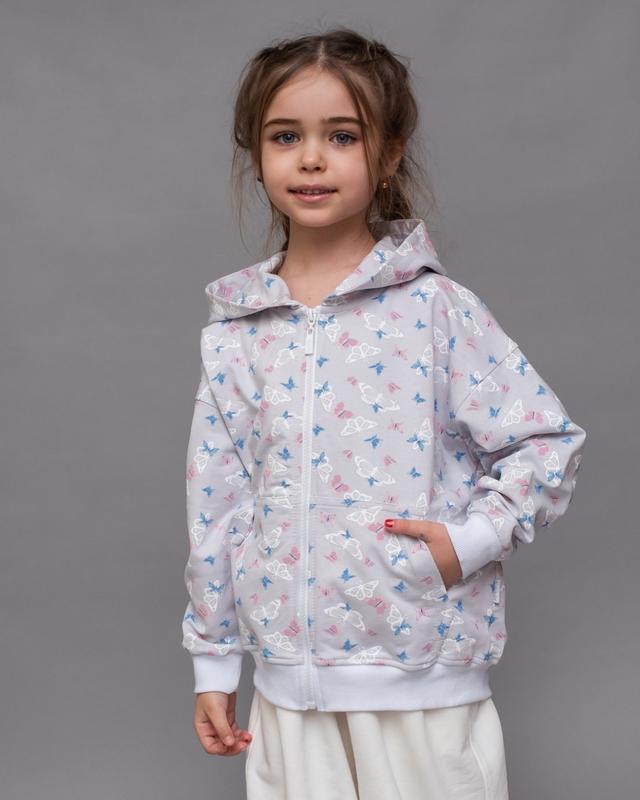 🦋 Новинка для дівчаток! 🦋 Кофта на блискавці з капюшоном — ніжна, зручна та дуже мила 😍 Ідеальна для прогулянок у прохолодні дні 🍂🌸 🔹 М’який трикотаж 🔹 Зручні кишеньки 🔹 Принт з метеликами 🔹 Розміри: 122, 128, 134 Створена для комфорту та гарного настрою