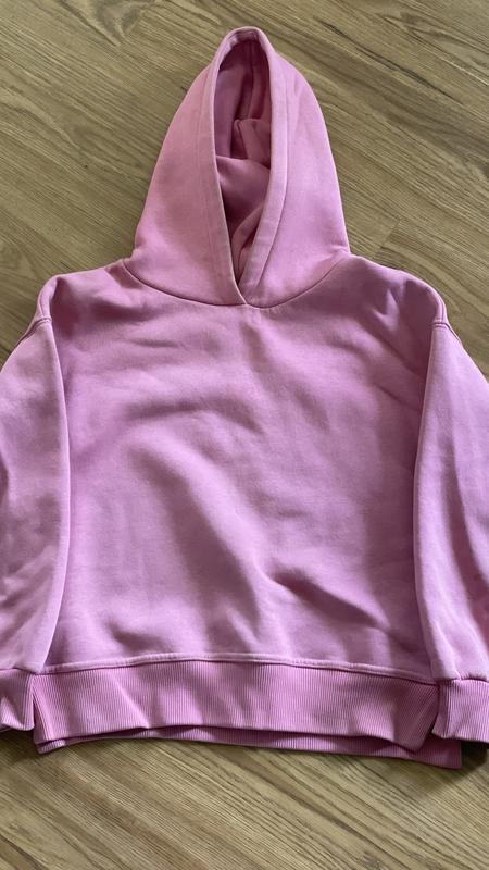 Теплий дівчачий худі, гарного рожевого кольору. Має плями на зворотній стороні рукавів, проте можливо можна вивести (фото виставлене). На ріст 152 см. Виробник Туреччина.