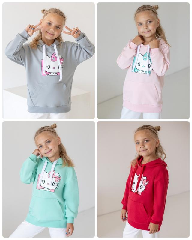 Худі оверсайз двонитка, худи для девочки хелоу китти, hello kitty, толстовка для дівчаток...