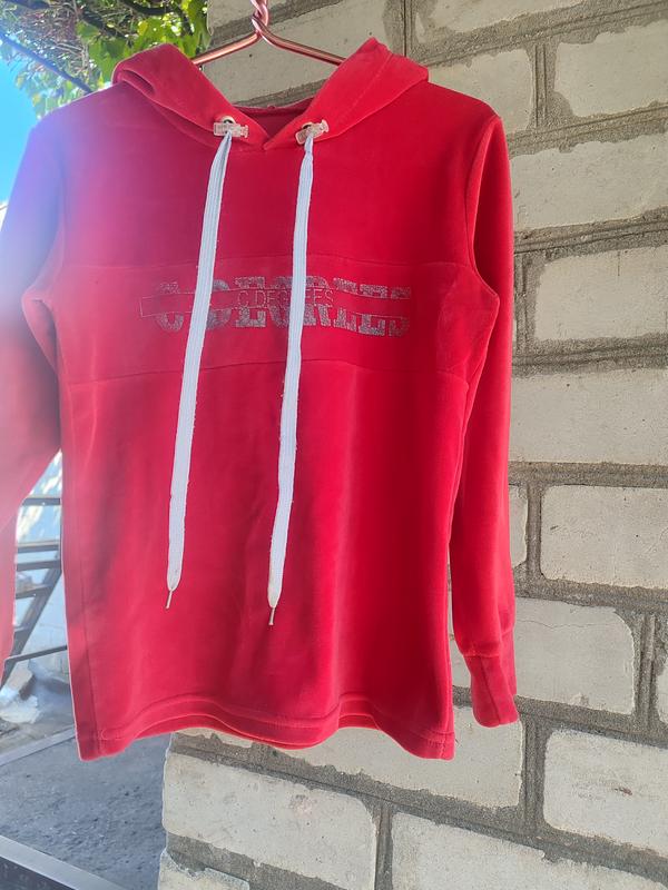 Красивая худи с капюшоном, велюр очень мягенький, на ощупь как бархат, 122-128 состояние отличное без нюансов.