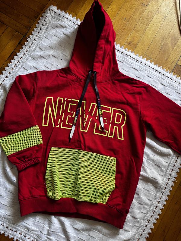 Червоне худі з неоново зеленою сіточкою , розмір вказан 170 але буде на 152 . Заміри на фото . Дивіться інші оголошення, є ще худі і кофти на цей вік. Відправка новою або Укрпоштою , оплата на карту або безпечна