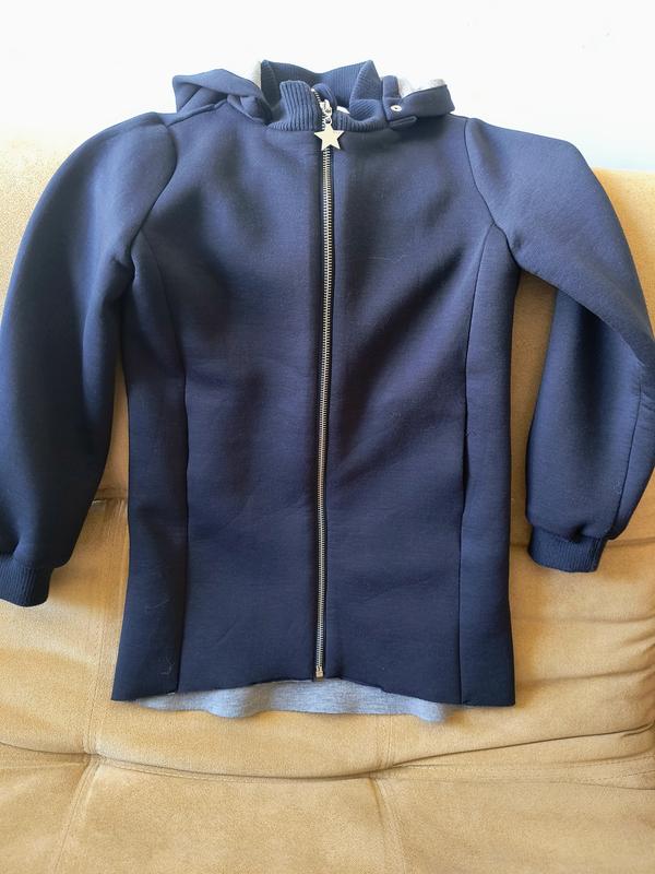 довольно плотная худи, универсальная модель, и поверх блузы и под спортивный стиль. Длина от середины плеча 58 см, спинка 64, рукав от плеча 52, плечи 33, полуширина под руками 39-40 (тянется)