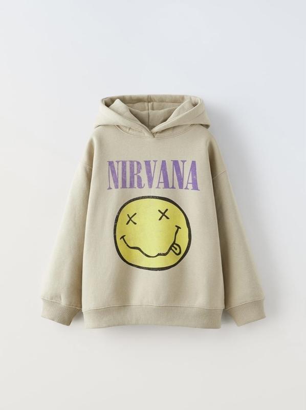 🧥 Стильное худи ZARA ▫️ Размер: 130 (8–9 лет) ▫️ Цена: 750 грн ▫️ Цвет: бежевый ▫️ Принт: Nirvana с ярким смайлом 🙂 ▫️ Мягкая и приятная ткань, удобный капюшон, легкий флис Идеально подходит для школы или прогулок 👌 📩 Пишите в сообщение для заказа!