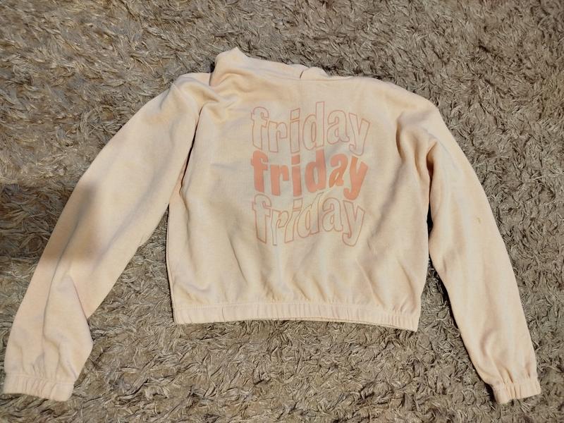 Укороченное худи для девочки.Стан отличный,только есть одно пятно на рукаве,на фото видно