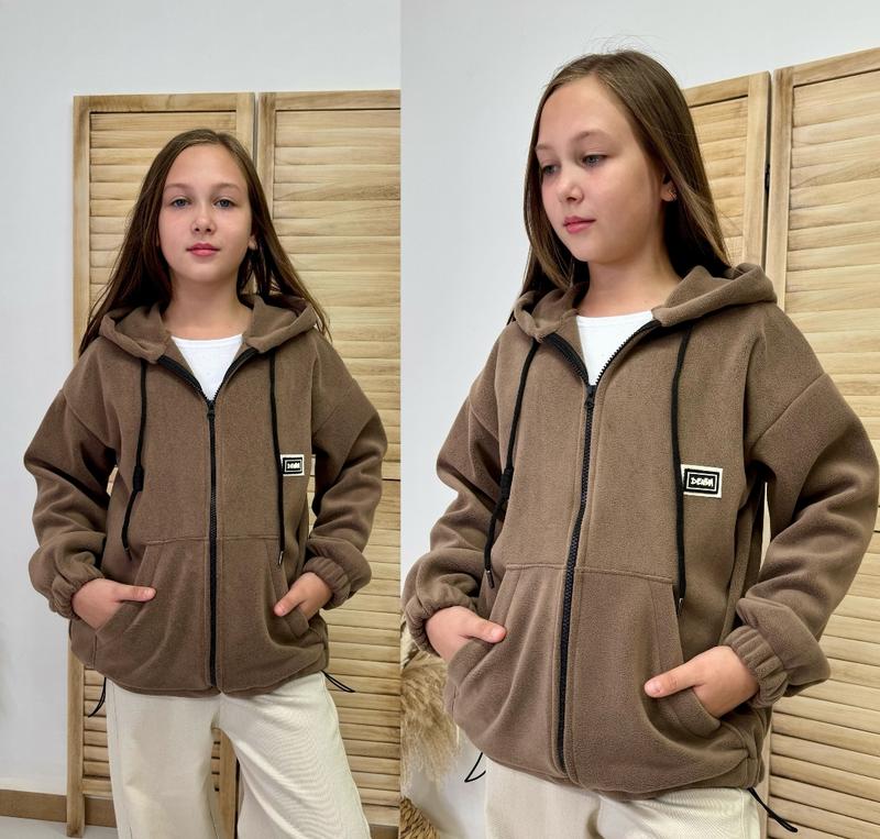через кнопку купить только полная оплата!!!! арт 6916 Худи-зепка на молнии с карманами и капюшоном внизу есть утяжка Ткань-флис-полар, тактильно очень мягенький и теплый Супер качество! рост/длин.худи/пог/рукав от горловины похибка+-2см 140/55/48/56-1шт 146/56/49/57-1шт 152/57/52/59-1шт 158/59/54/62-1шт 164/62/56/66-1шт Тан