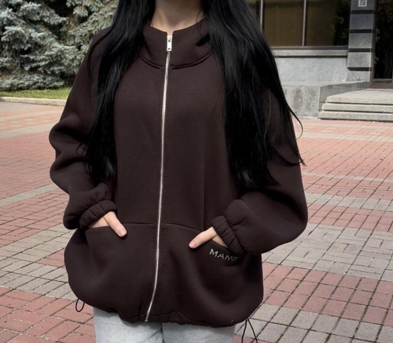 На кишені лаконічний прорезинений накат, кишені прямі. Знизу стяжки, крій овер. Тканина -тринитка на флісі, якості пеньє. Заміри: 140 довжина - 54см, напівобхват грудей - 60см, рукав від горловини - 57см. 146 довжина - 56см, напівобхват грудей - 61см, рукав від горловини - 60см. 152 довжина - 60см, напівобхват грудей - 62см, рукав від горловини - 63см. 158 довжина - 62см, напівобхват грудей - 63см, рукав від горловини - 66см. 164 довжина - 64см, напівобхват грудей - 64см, рукав від горловини - 69см.