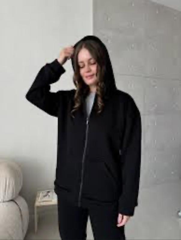 Чорне зіп худі на блискавці,всередині на грубому утеплені.Довжина 68 см,ширина 50 см,рукав від горла 65 см