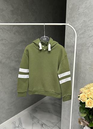 Худі , колір хакі з білими вставками на рукавах . Тепленьке , на флісі . Розмір 128, Прімарк .