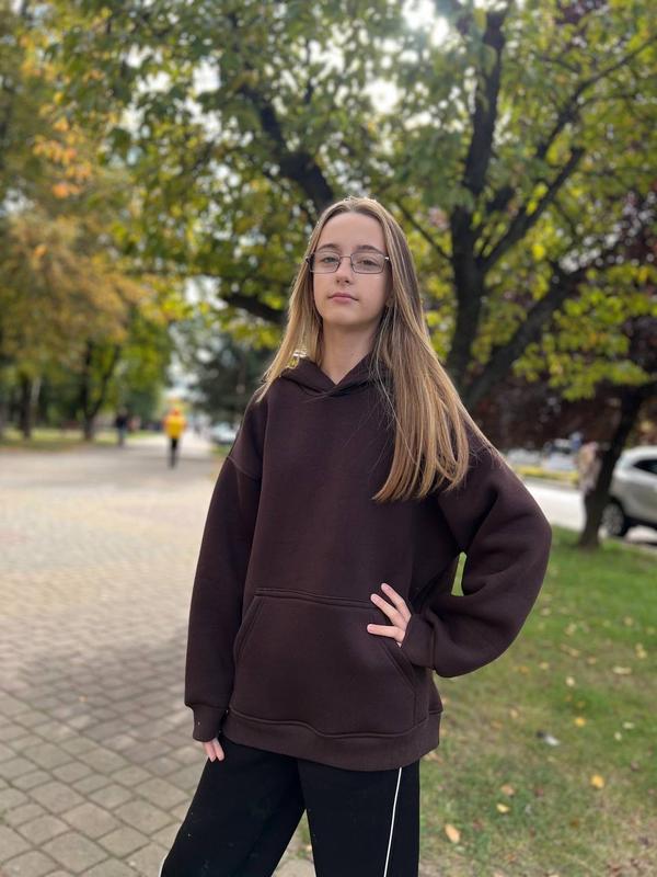Про товар: - Модель Oversize утеплена флісом; - Однотонна; - Доповнена прорізною кишененю; - На рукавах присутні манжети; - Каптур з трикотажним підкладом. Склад: 70% бавовна, 30% лайкра. Заміри, см: Розмір 140: ДВ - 56, ДР - 59, ПОГ - 51. Розмір 146: ДВ - 58, ДР - 63, ПОГ - 52. Розмір 152: ДВ - 60, ДР - 66, ПОГ - 53. Розмір 158: ДВ - 62, ДР - 69, ПОГ - 55. Розмір 164: ДВ - 65, ДР - 71, ПОГ - 57. ДВ - довжина виробу. ДР - довжина рукава від горловини. ПОГ - півобхват грудей. Ймовірна похибка виміру 2-3 см.