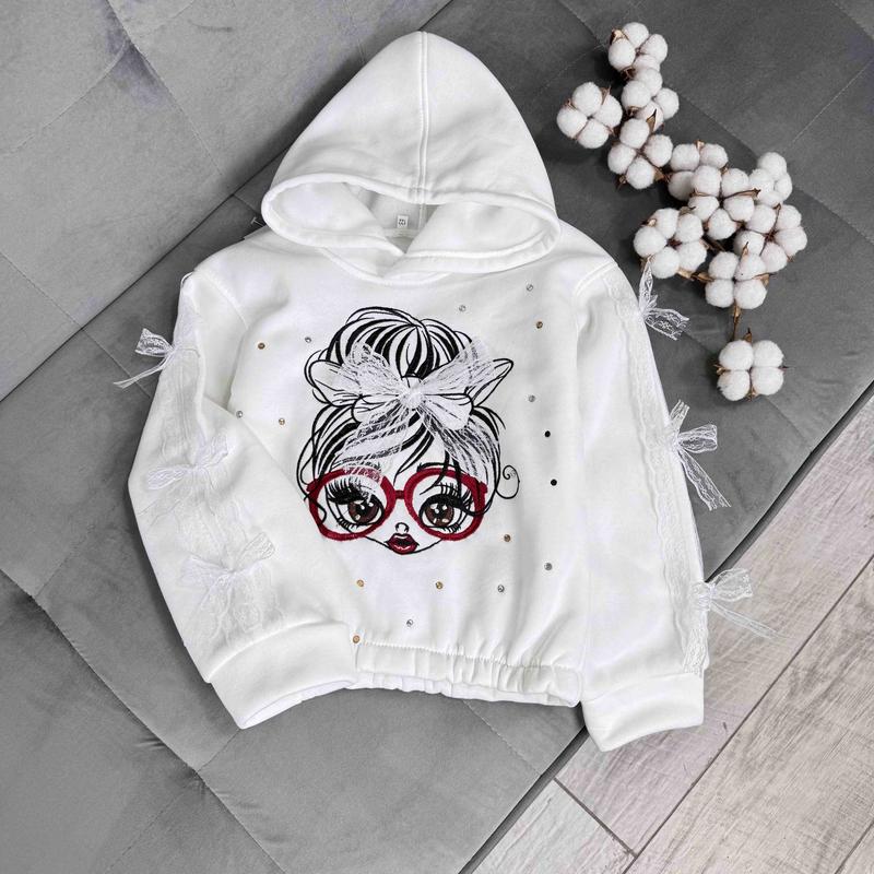 ❄️Худі Дівчинка в окулярах. Тканина тринитка на флісі, туреччина. З капюшоном на пришитими бантиками на рукавах. Виробник Україна, тканина турецька 📐Заміри: 122 - довж. 41 /напівобхват. 37/ рукав 41 128 - довж. 43/напівобхват. 39 / рукав 42 134 - довж. 45 /напівобхват.40 / рукав 43 140 - довж. 46 /напівобхват.42 / рукав 46 🏷️775 грн Koalakads