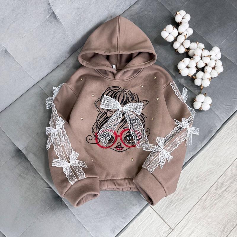 ❄️Худи Девочка в очках. Ткань трехнитка на флисе, туречна. З капюшоном на пришитими бантиками на рукавах. Производитель Украина, ткань турецкая 📐Замеры: 122 - длин. 41 / полуобхват. 37/ рукав 41 128 - длин. 43/полуобхват. 39 / рукав 42 134 - длин. 45 / Полуобхват.40 / рукав 43 140 - длин. 46 / Полуобхват.42 / рукав 46