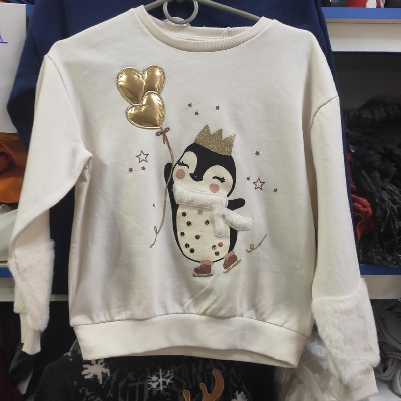 Дуже красива кофтинка. Качественная аппликация. Материал 60% хлопок 40 полиэстер. Начес в середине. Размер 134.