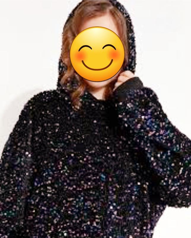 Эффектное худи, которое не оставит вас незамеченной! Этот пуловер полностью покрыт мерцающими пайетками, создающими потрясающий визуальный эффект. Черная бархатная основа с серебристым пайетками. Классический крой худи (с капюшоном и манжетами). Материал: Мягкая трикотажная подкладка внутри для комфорта. Отличное состояние, без дефектов Добавляет гламура и блеск любой наряд. Сочетая праздничный вид с удобством спортивного стиля. Длина 50см ПОГ 45см Рукав 42см