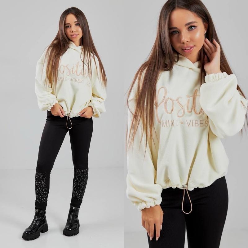 арт 5611 Тепле худі із вишивкою та капюшоном на бокових стяжках Тканина полар-фліс тактильно дуже м'який і пухнастий СКПЕР ЯКІСТЬ! зріст/довжина/пог/рукав від горловини похибка+-2см 140-146/46/54/58-1шт