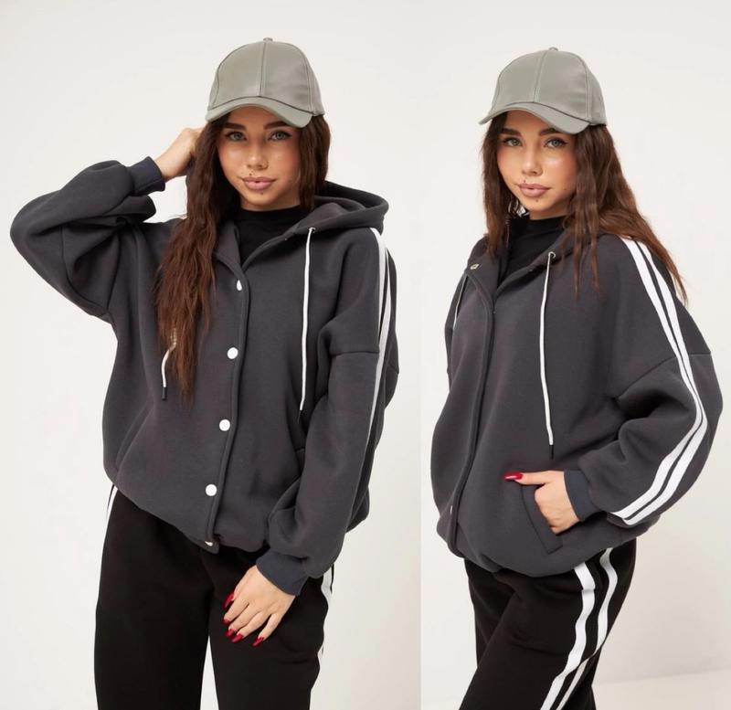 через кнопку купить только полная оплата!!! арт 6882 Бомбер-худи ОВЕРСАЙЗ теплый и удобный на кнопках с капюшоном ткань трехнить на флисе рост/длина/пог/рукав от горловины похибка+-2см 140-146/56/55/56-1шт 152-158/60/57/62-1шт Тан